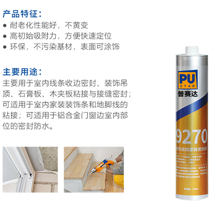 生活是屬于自己的,我們都在努力的營造安全、環(huán)保、美好的家庭環(huán)境,普賽達進行了大量的資金投入和實驗,系列化的推出了家裝產品及配套服務,從安全、環(huán)保、和可操作性等方面進行了大量的驗證,應用包含瓷磚、木地板、廚衛(wèi)、家具、大理石等等粘接、密封、防水、防霉需求。產品與細微處,盡顯品質生活。
